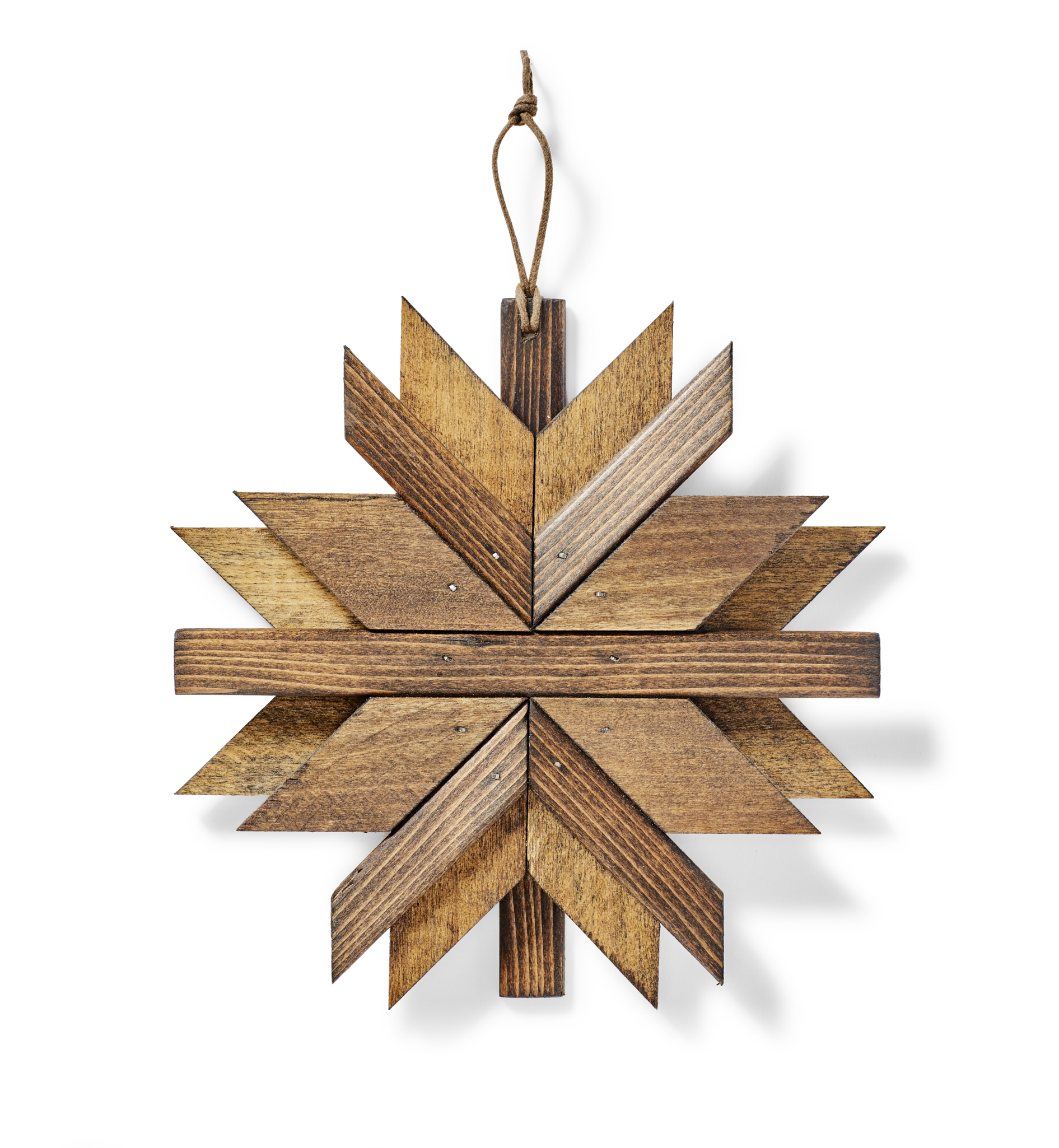 Our Wooden Snowflake Ornaments are individually handcrafted by local Seattle artist Laura Burkhart. Solid poplar and oak woods combine in a bold. angular design to create a rustic look that’s both modern and traditional. Limited quantities available.